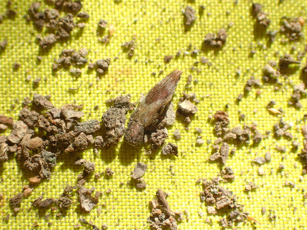 しばらくやっていると、1頭だけヒシモンナガタマムシが落ちました。