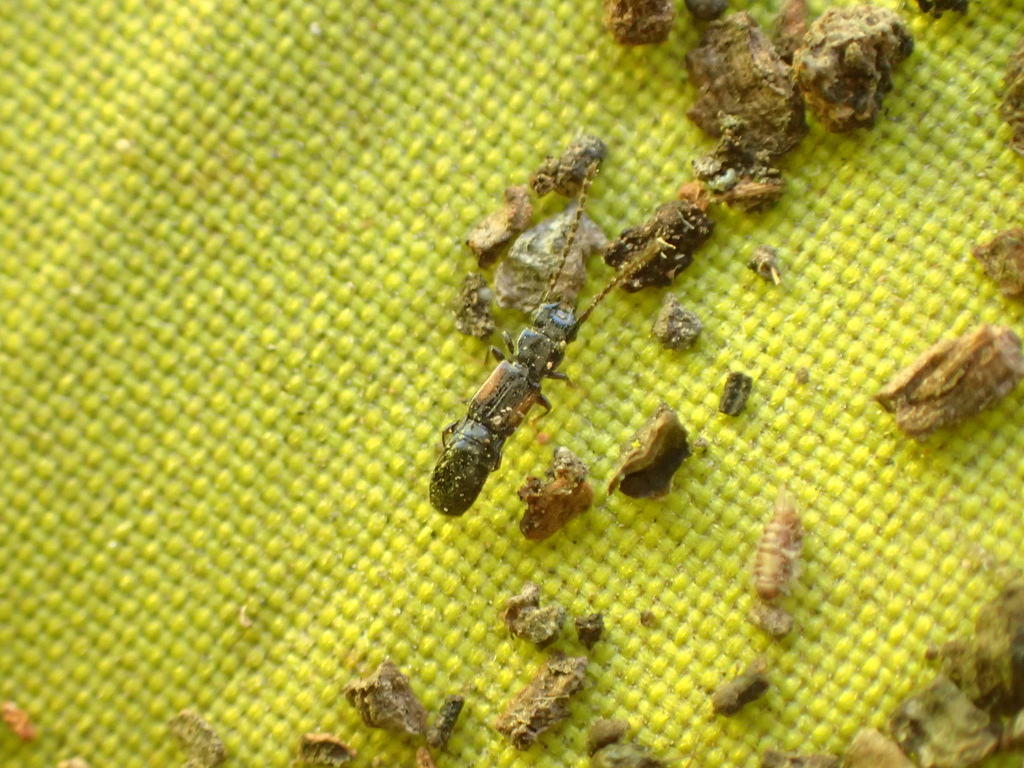 アカモンヒラタハネカクシでしょうか、平べったいハネカクシの仲間も落ちてきました。