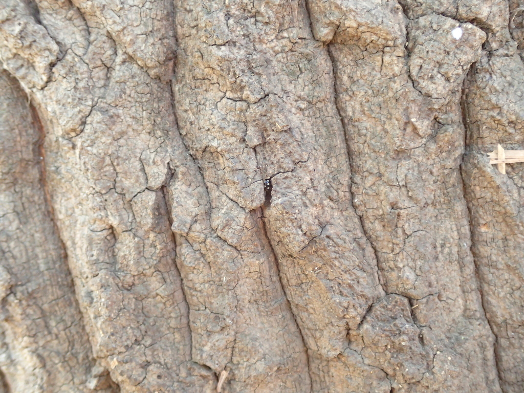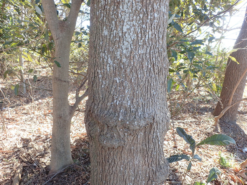 クヌギの木は樹皮に割れ目が多く、昆虫の越冬場所として機能していそうですが……めくれる樹皮はなく、目視で探すのはなかなか大変です。