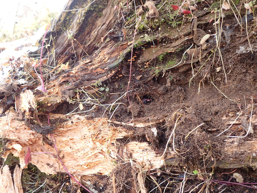倒木の一つに、根際に土が絡んでいるものがありました。