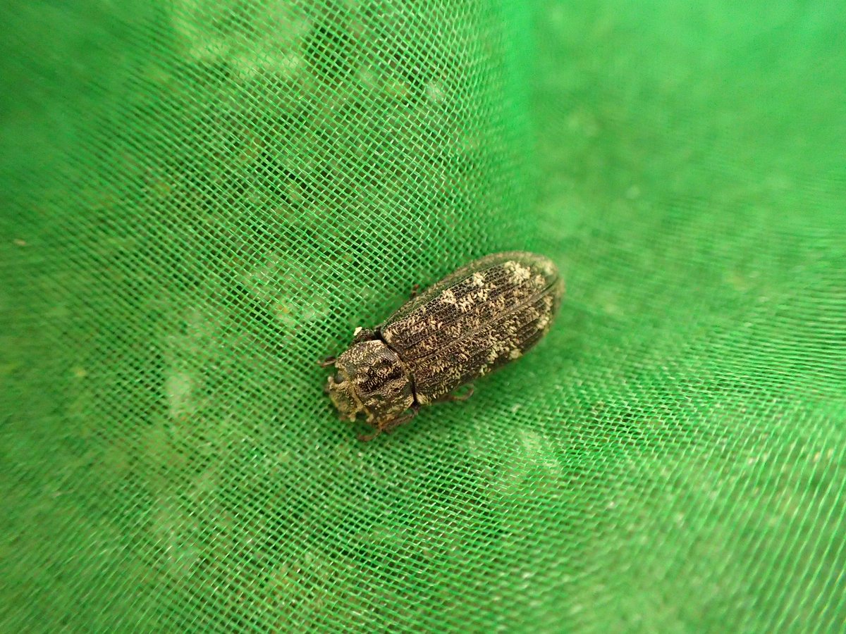 この時点でのウバタマムシの鮮度はバラバラで、明らかに野外越冬明けてるだろうという感じのスレスレ個体や、写真の個体のように微かに緑色の光沢が見られる新鮮な個体もいました。