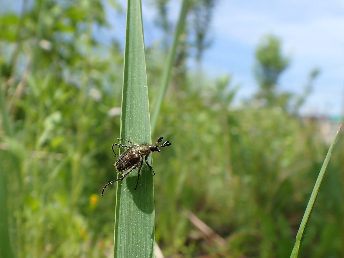 目的の林縁に向かう途中、道端のしょうもない草地でヒゲブトハナムグリを見つけました。