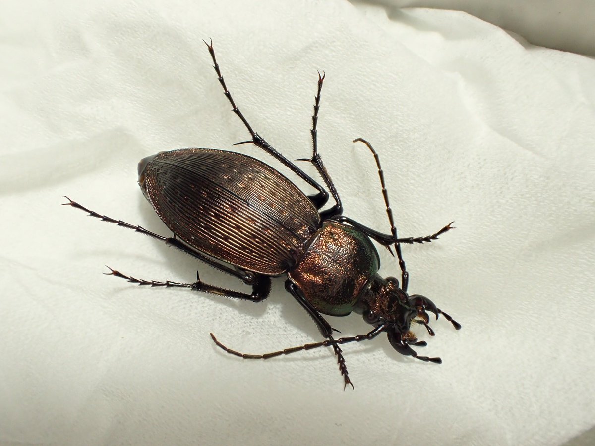 昼間にもかかわらず、林縁を歩くオサムシがいました。