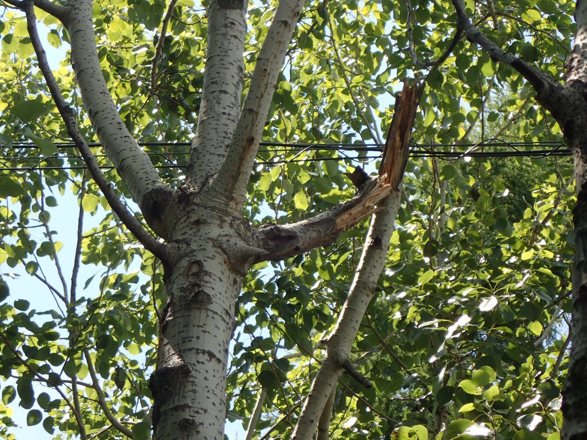 ヤマナラシの枝が折れているのは、台風の影響かそれとも…