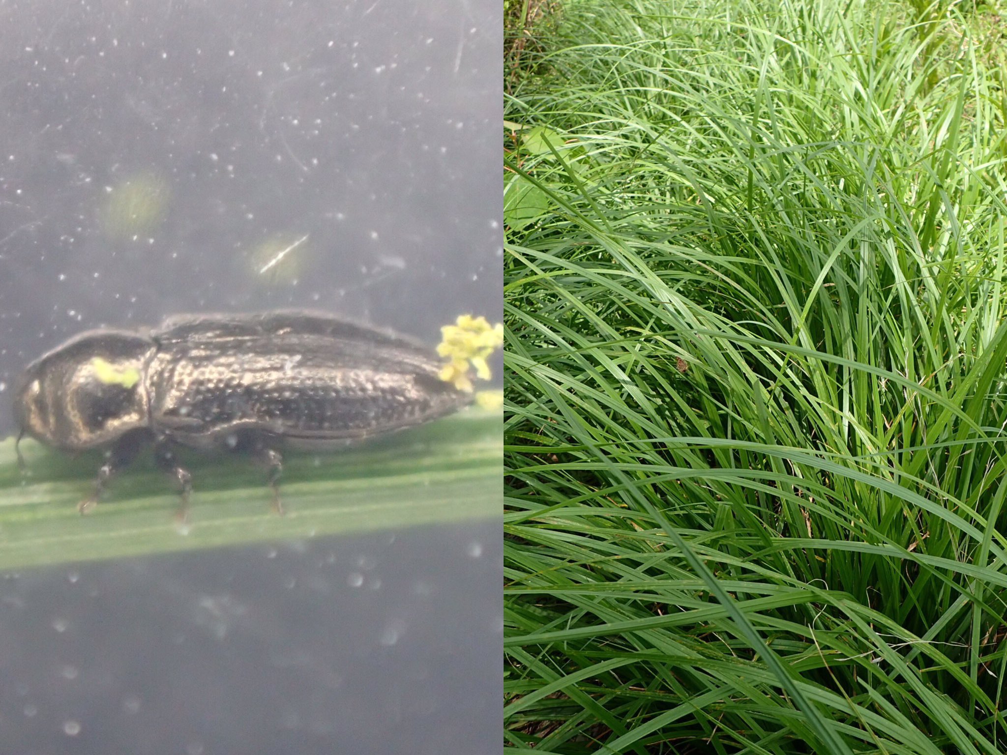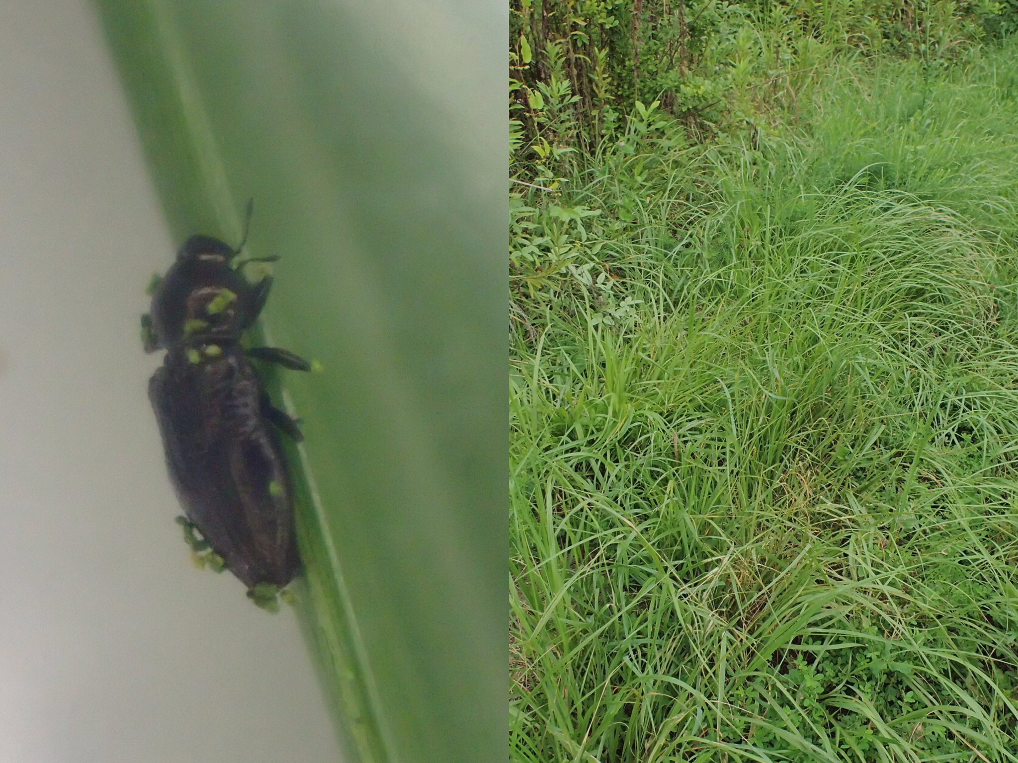 いつもの河川敷で、カゼクサやチカラシバがあるのにクロケシタマムシが見られないのはこの移動能力の低さで分布を中々広げられない、とかそういうのがあるのかなと思いました(適当)