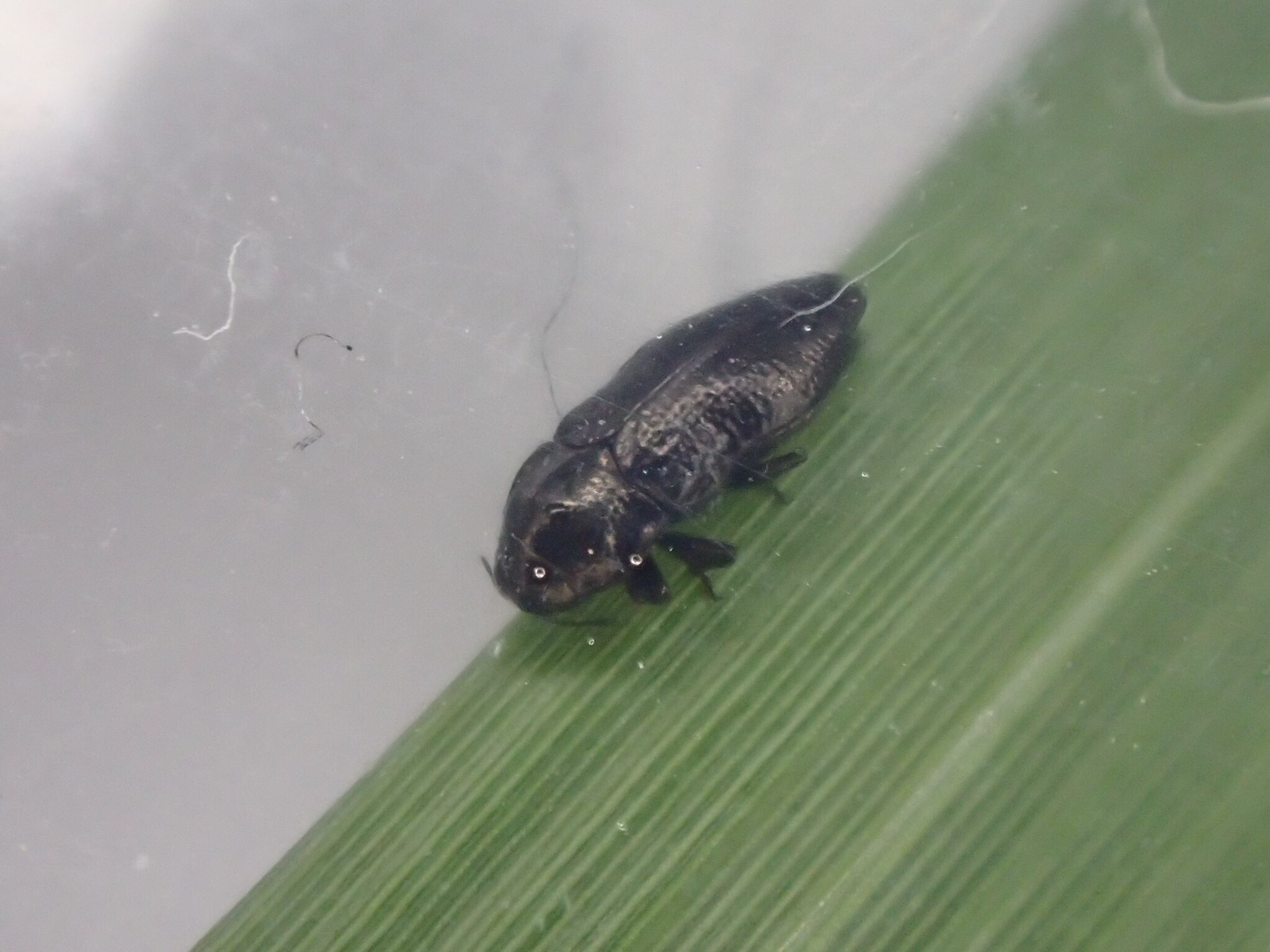 3mmの虫なので、飛ばれたら最後と思って、写真はまともに撮らなかったのですが…このタマムシが飛べないorほとんど飛ばないことを忘れてました(汗)