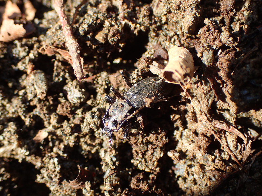 偶然、土中で越冬していた小さなオサムシを引き当てたようです。