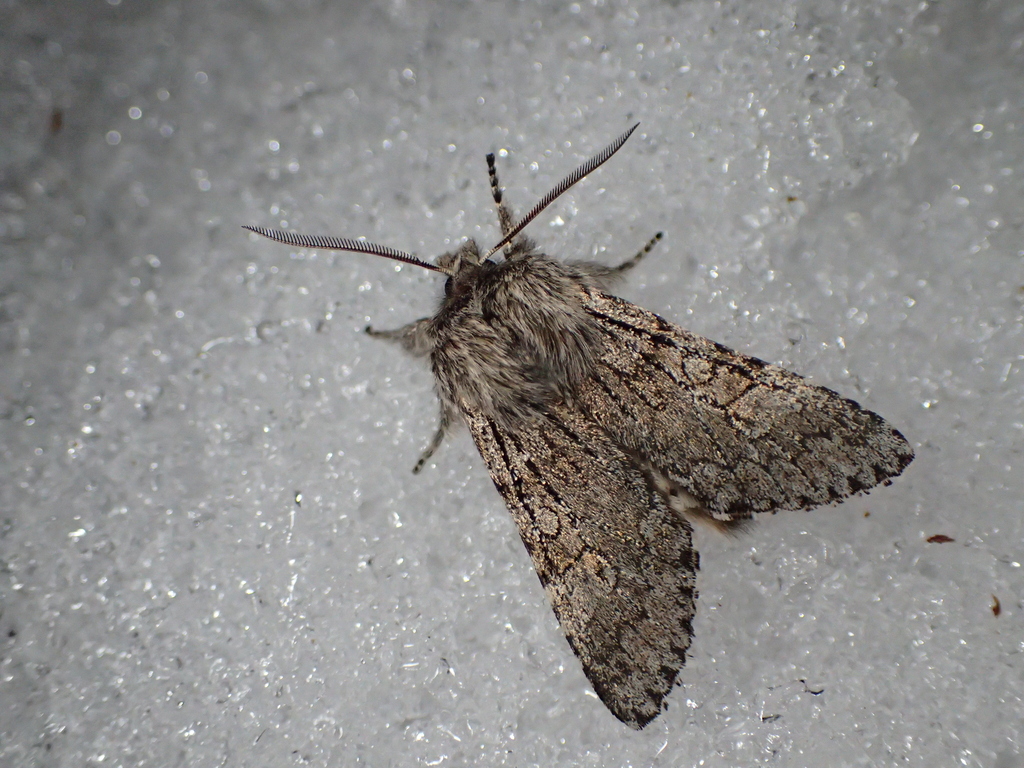 タニガワモクメキリガが採れる時期には周囲に雪が残っていることが多いため、このように雪×タニガワモクメキリガの写真を撮ることができます。