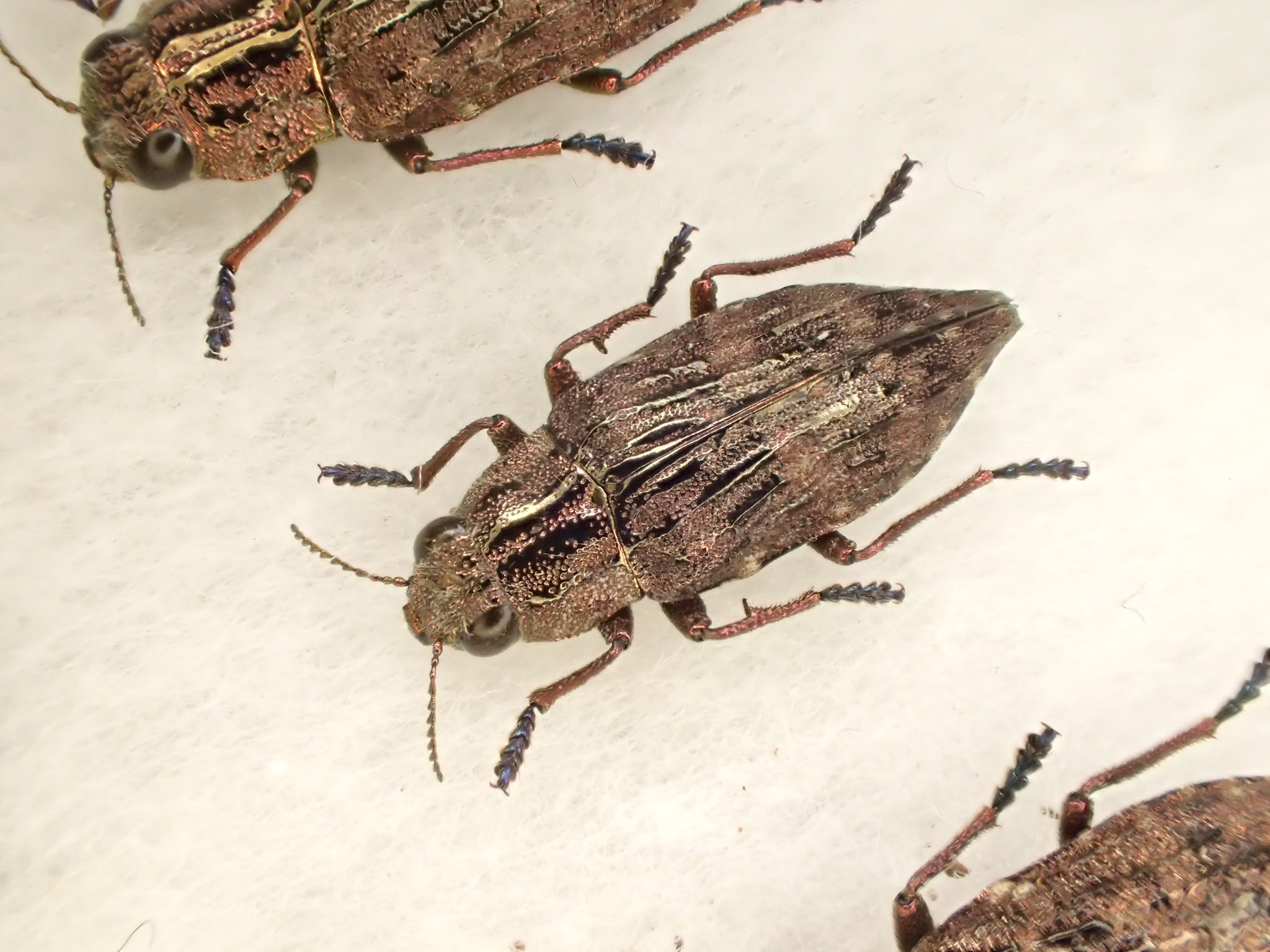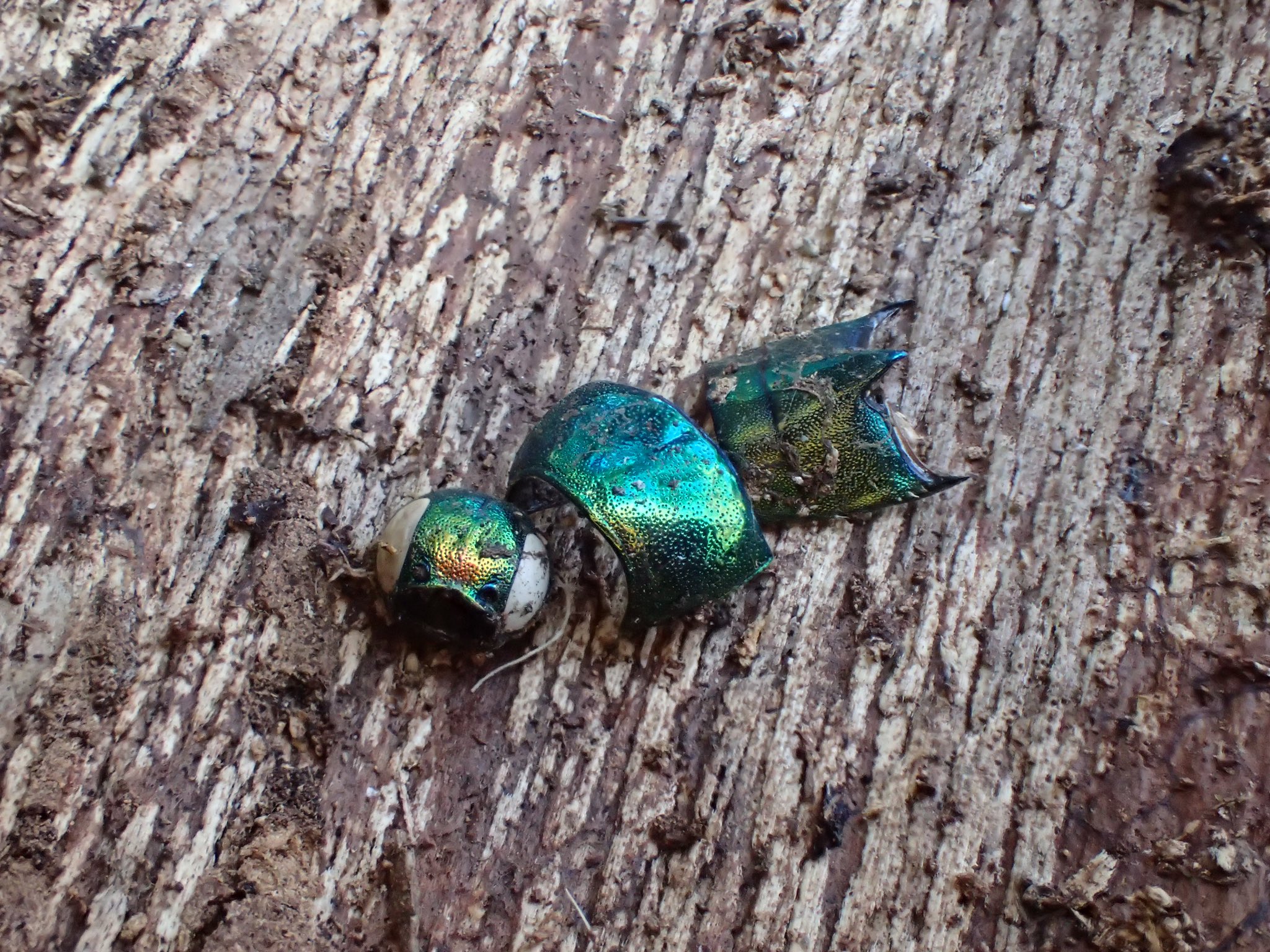 ここにはちゃんと生息しているようで、下が膨れた楕円形の脱出孔(中型のタマムシ亜科は大体こんな感じ)が無事確認できました。