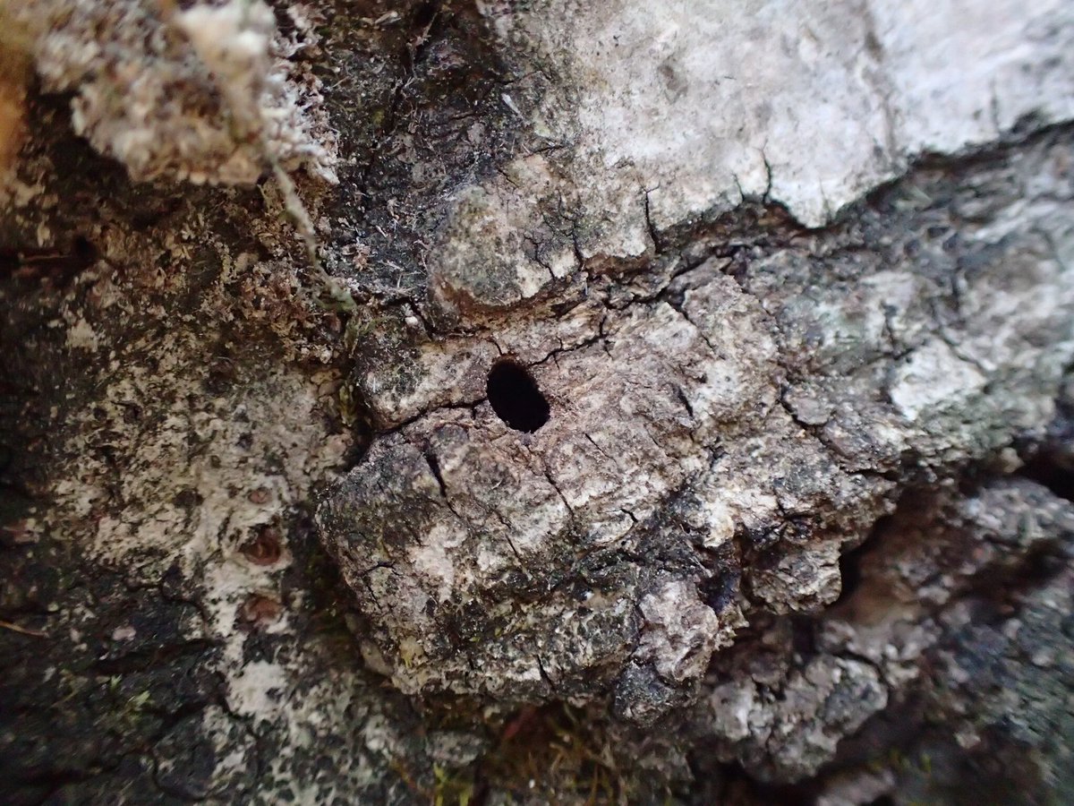 そう思い始めた時、ある木の枯れた部分に多数の脱出孔が開いているのが目に付きました。