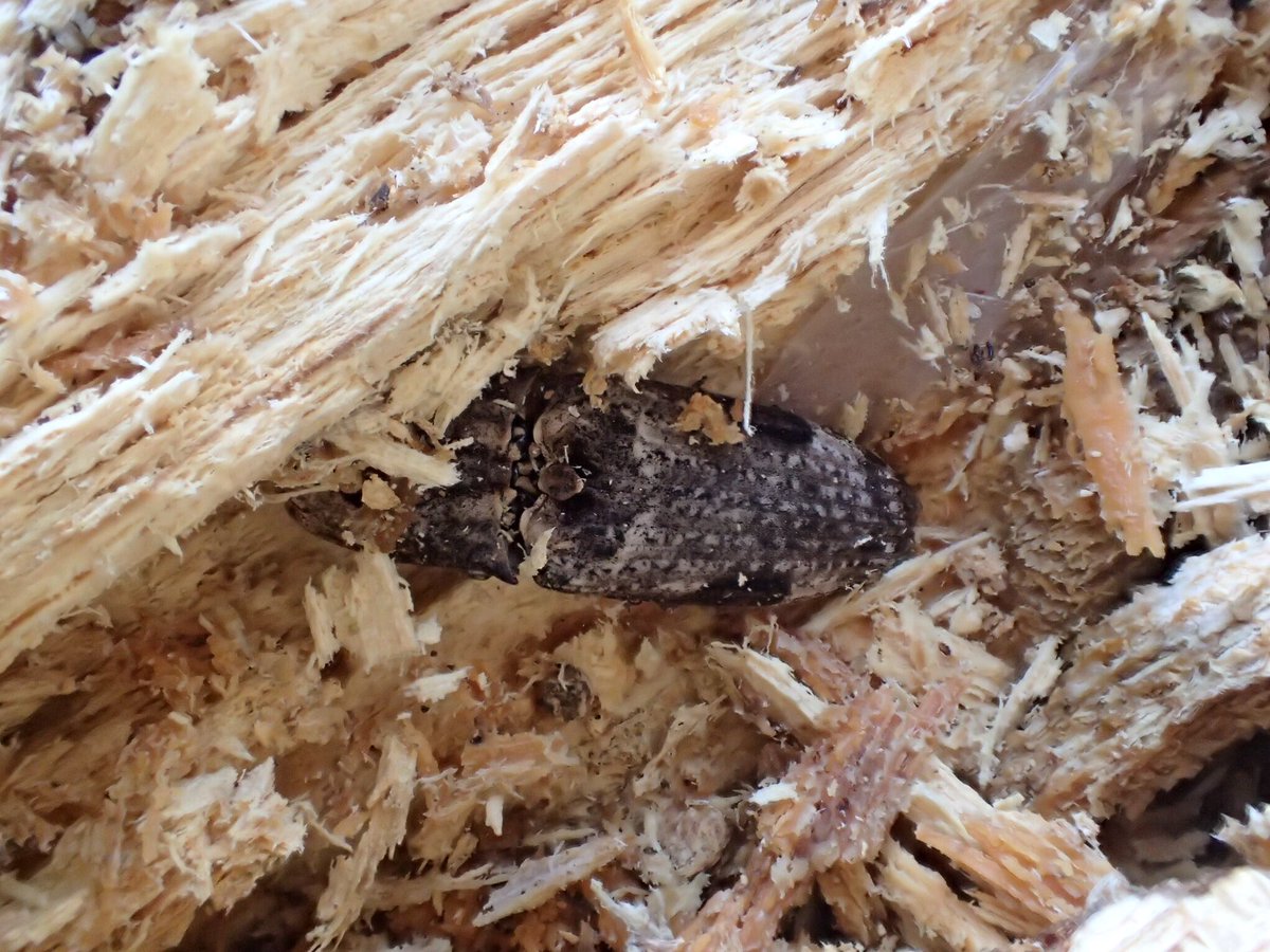 ウバタマコメツキみたいに”羽化したて”の感じがしなくて、なんだかものすごく適当に材の中に潜り込んでいるような感じがしました。