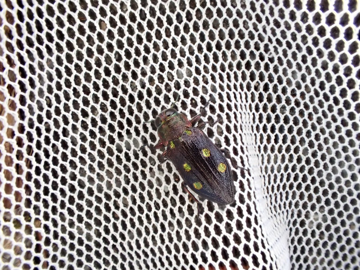 時刻は17:57…クリのスウィーピングで予想外のムツボシタマムシが入りました。