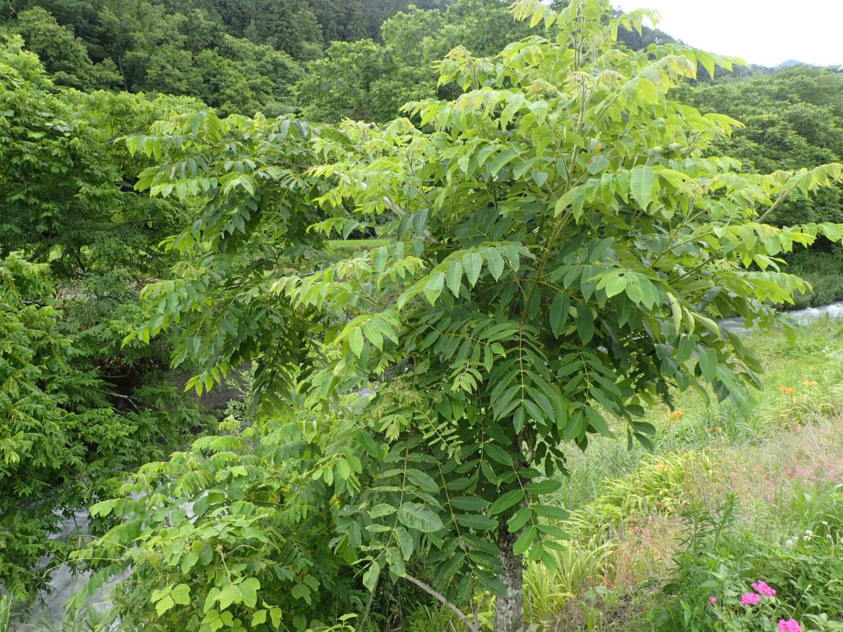 写真のオニグルミは低位置にいい感じに日が当たっていたので、朝摘みに良さそうだなぁとか思いながら掬ってみると、
