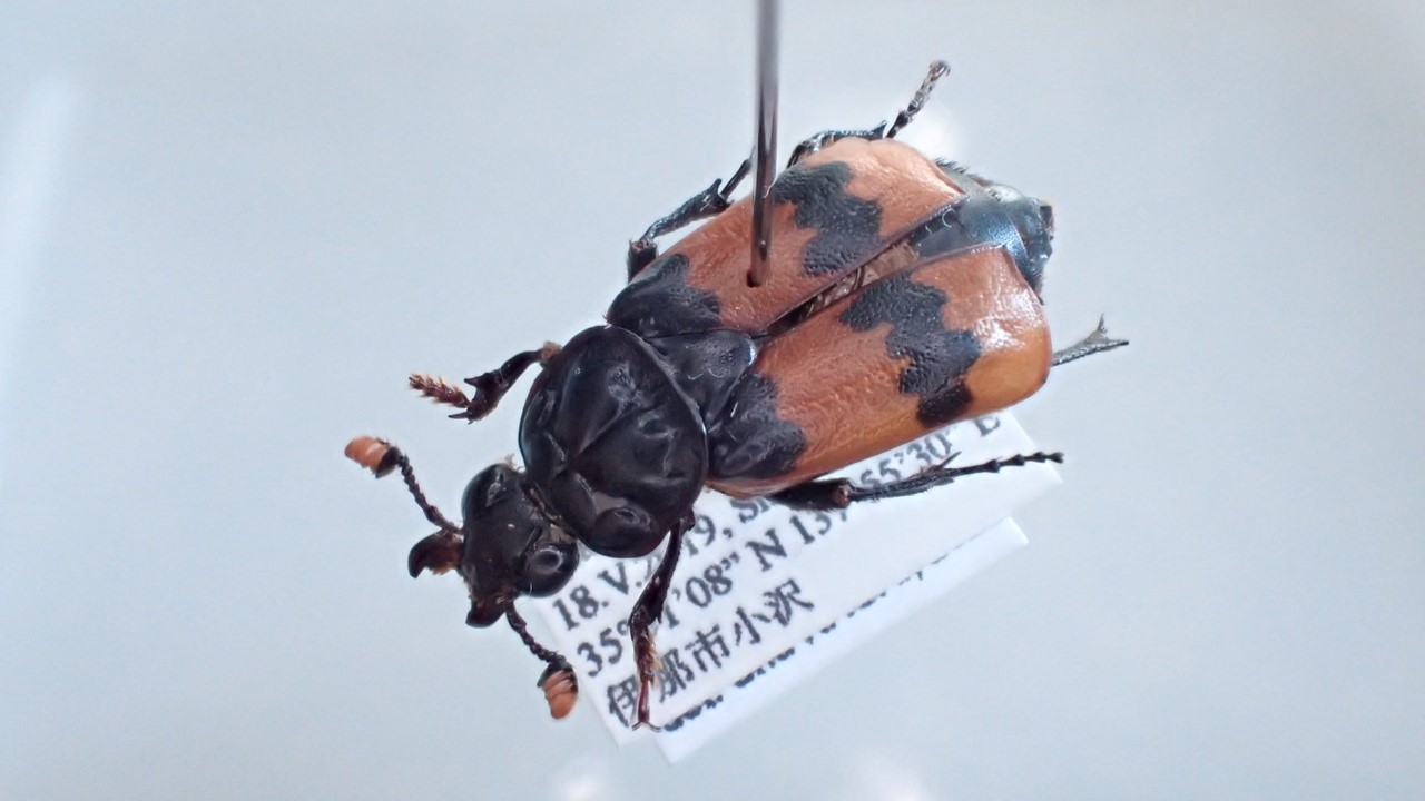野外で拾った甲虫の死骸というものは大抵パリパリに乾燥していて、脚の形を整えるのも難しいというか無理な場合がほとんどです。