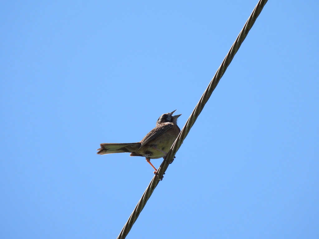 まだ若そうに見えたホオジロ。さえずりの練習をしていました。