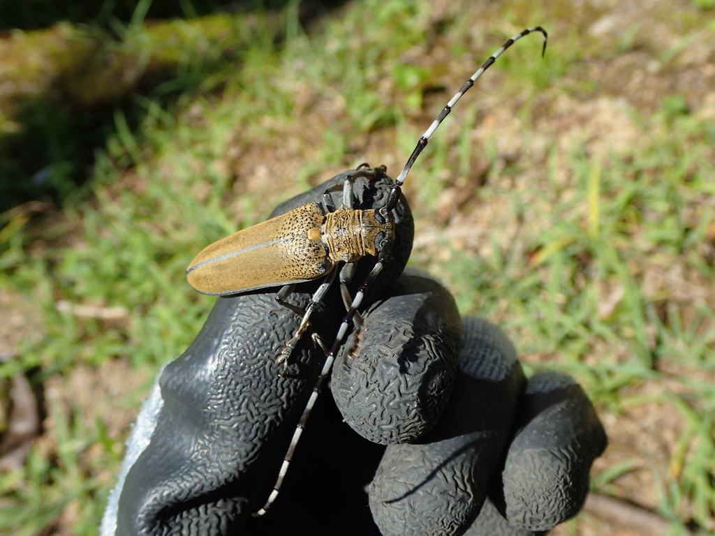 大型のカミキリは触角の長さもあって標本箱の中でスペースを食うので、避けてしまう傾向にあります。今回も採集は見送り……