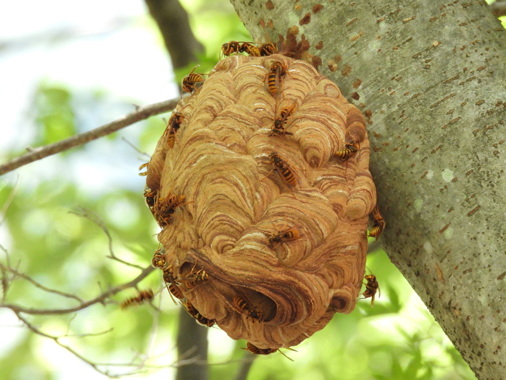 スズメバチの巣って冬とか樹木の葉が落ちた時に(古巣を)見つけることが多くて、アクティブで剥き出しな巣をじっくり観察できる機会はなかなかないですよね。