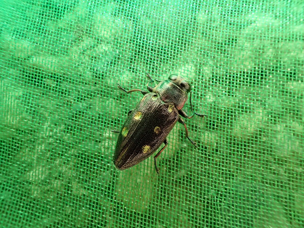 網の中に入っていたのは、普通種と言われているにもかかわらずこれまで全く縁がなかった初採集種…ムツボシタマムシでした。
