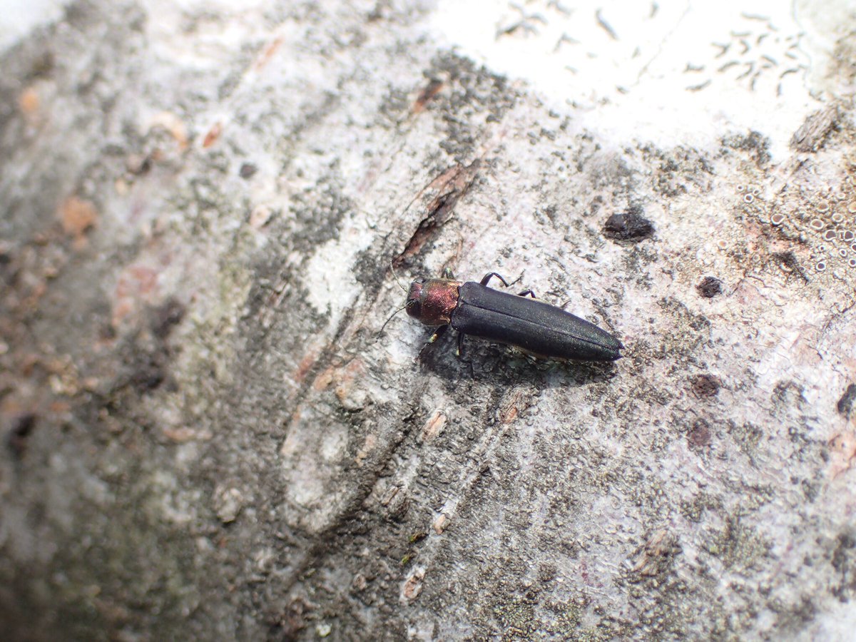 案の定…ヤマナラシをじっと見ていると幹や枝を歩いているクロコモンタマムシが次々と見つかりました(汗)