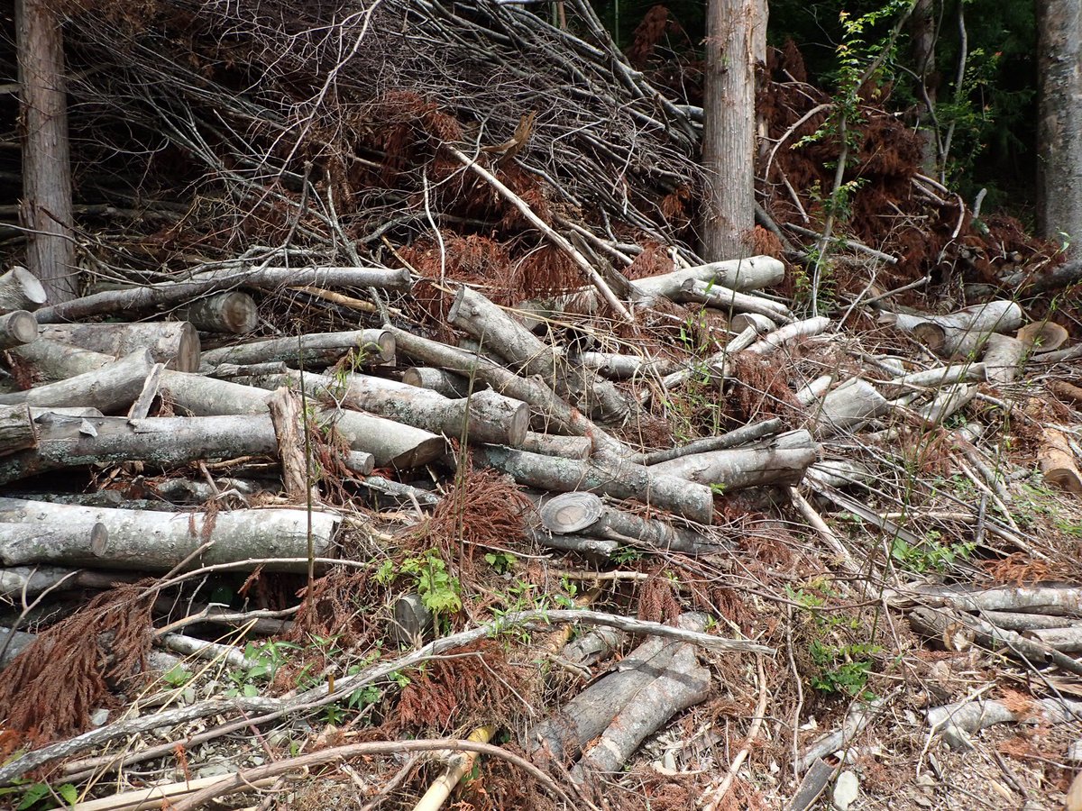 途中で見つけたのは、ケヤキを中心とした伐採木が多数積まれている非常に良さげな場所。