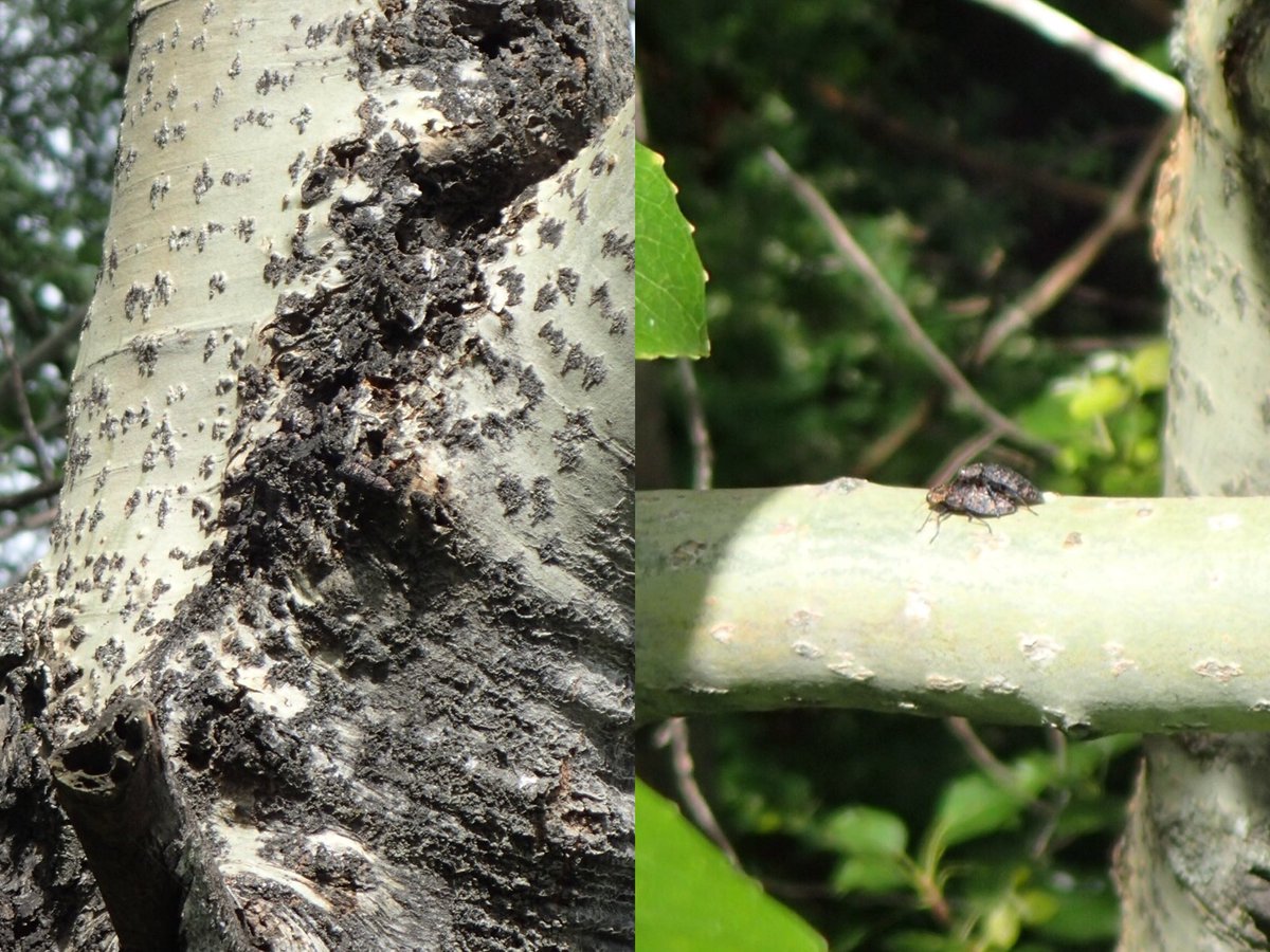 同じくヤマナラシの幹に飛来していた、ミツオホシハナノミも採集できました。