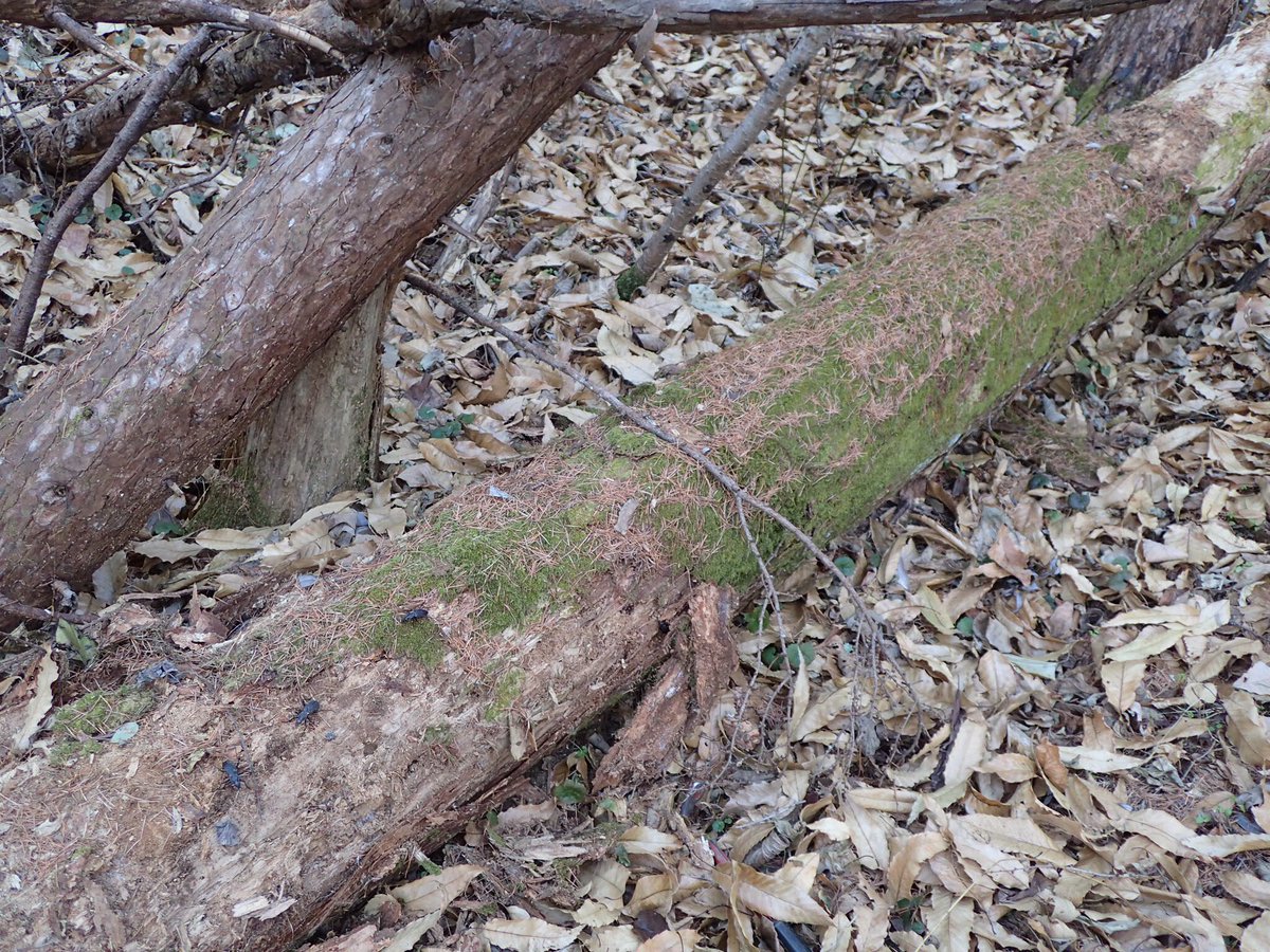 別に針葉樹である必要は無いとは思うのですが、立ち枯れとか倒木が多いアカマツやカラマツの林へ。