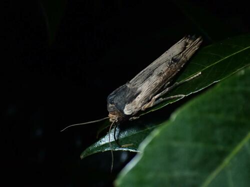 本種も前種と同じヨトウガ亜科のガで、キリガ採集シーズンに気が早い10月頃(まだ寒すぎない日)や、冬のかなり暖かい日には糖蜜に飛んでくることが多いです。トウモロコシや牧草など、各種イネ科の害虫です。