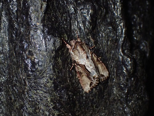 本種は成虫越冬するエグリバ亜科のヤガですが、晩秋の暖かい日に糖蜜採集を行うと飛んでくることがあります。