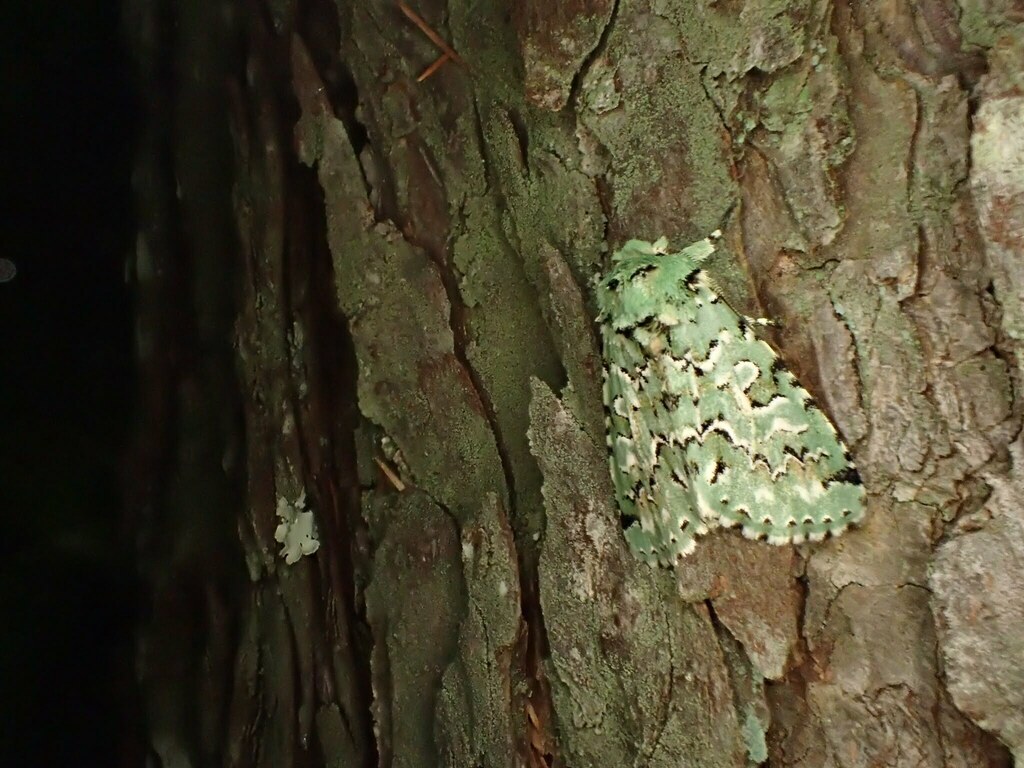 冬夜蛾の一種であるウスアオキリガ。