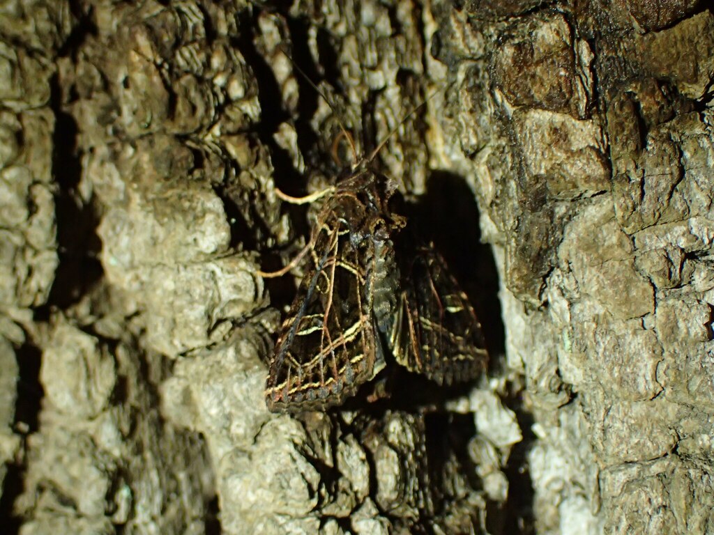 関東平野部の10月末はまだ暖かくてキリガの採集には若干気が早いのですが、代わりに本種のような格好いいヤガが来てくれるのでキリガ以外の蛾類を期待して暖かい日に糖蜜をやってみるのも面白いと思います。