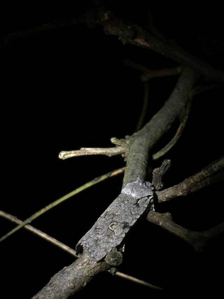 街灯の傍の木の枝に紛れていた個体。(2019/10/22)