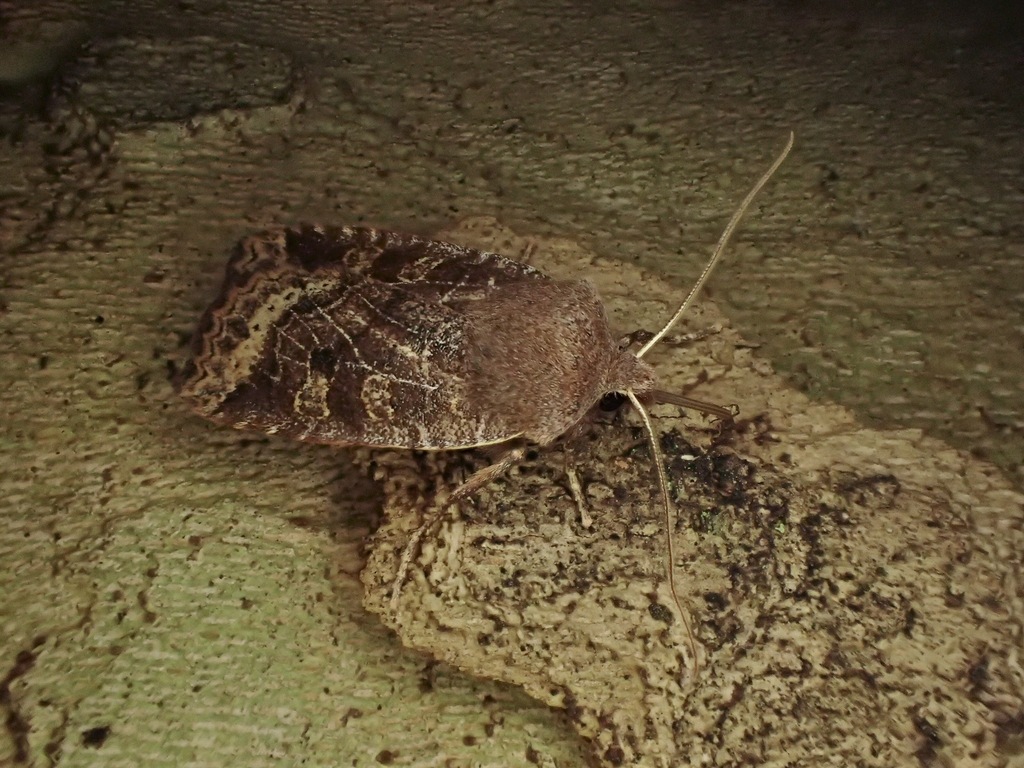 2019.12.07(曇)フサヒゲオビキリガAgrochola evelina (Butler, 1879)気温2℃の中、近場で糖蜜採集をやってみたら何頭か来てくれました。この寒い中でも元気に活動できるのは凄いわ……今年から糖蜜採集を始めました。やる度に新しい冬夜蛾と出会えてとても面白いです…