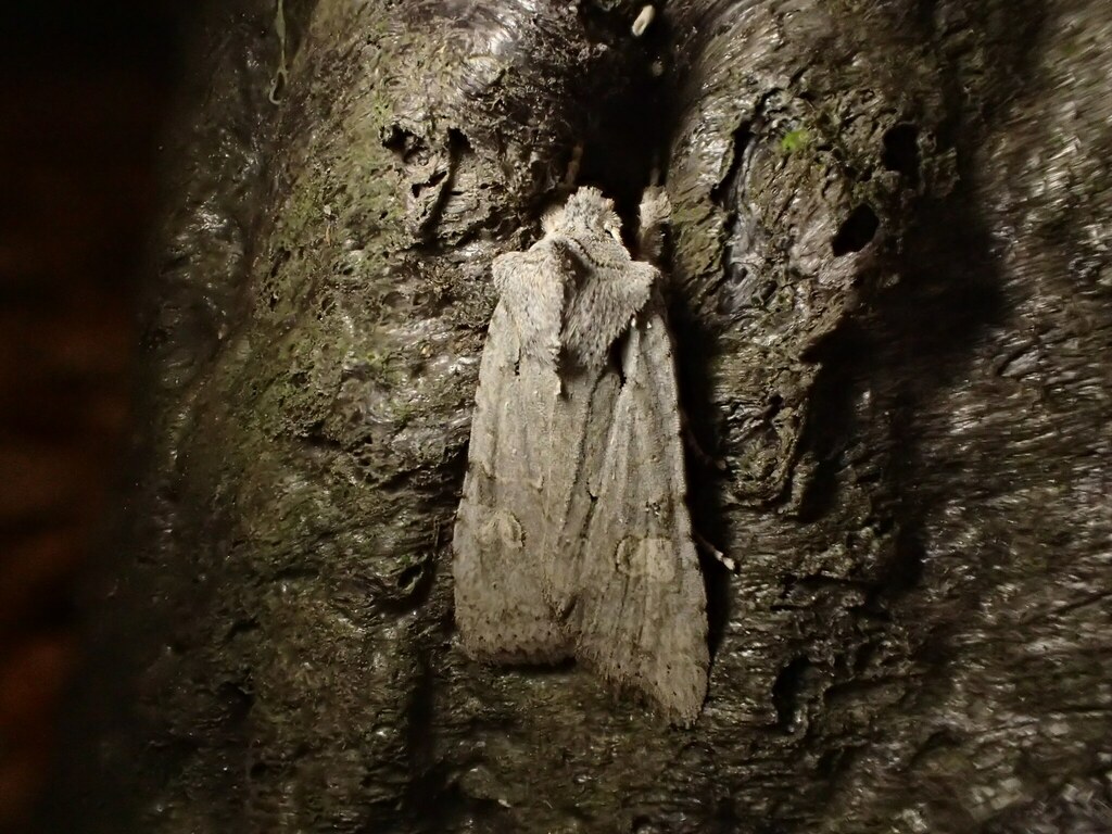 モミなどが生える山で見つかるエグリキリガ。晩秋と春にライトトラップで得られます。