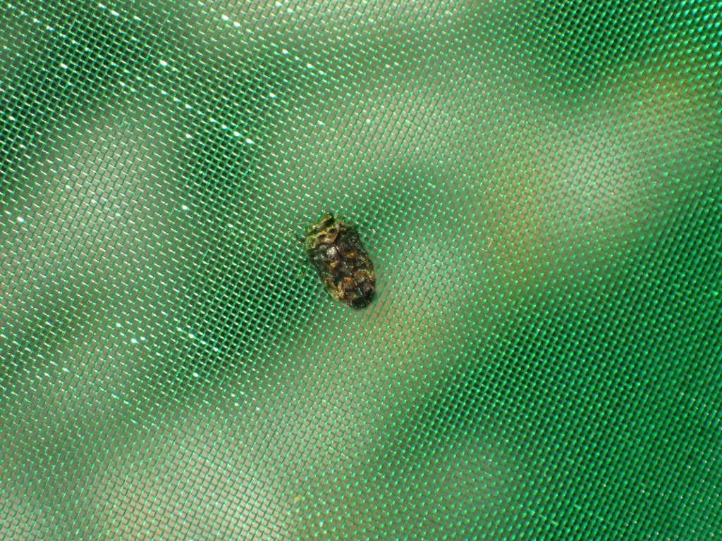 小さなタマムシの仲間は大抵、網の一番底に落ちているか側面に止まっています。